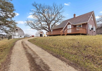 Nicely maintained & updated 3 bedroom, 1.5 story home on 5 beautiful country acres with outbuildings galore. Zoned AG. Updated eat-in kitchen with newer cabinets, countertops, breakfast bar, all appliances stay (new dishwasher). Separate formal dining area leads to adjacent cozy living room with gorgeous hardwood flooring thru-out. Spacious 1st floor master bedroom with his/her closet.