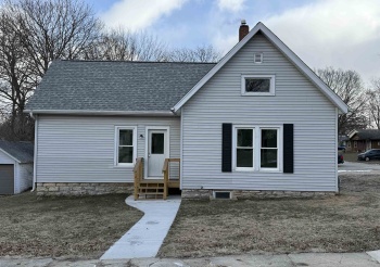 1+ story vinyl sided home. 3 bedrooms, 2.5 baths. Main level laundry. New wood laminate flooring. Roof approximately 5 years old. 2 car detached garage. Stove and refrigerator included.