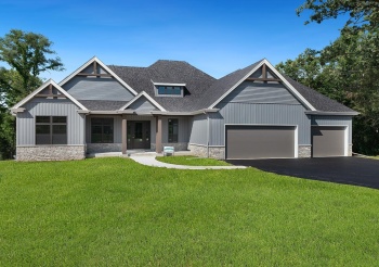 Oehlberg Construction presents Captivating Ranch, 2300 sq ft w 3 Bedroom, 2.5 Bathrooms, .95 acre, located in Whispering Winds Roscoe. Walk into 12 ft ceilings, and wall to wall windows overlooking foliage scenery on this mature tree lined lot! Unique kitchen consists of an 8-10 person quartz countertop island w plenty of storage designed by Custom Wellborn Cabinets.